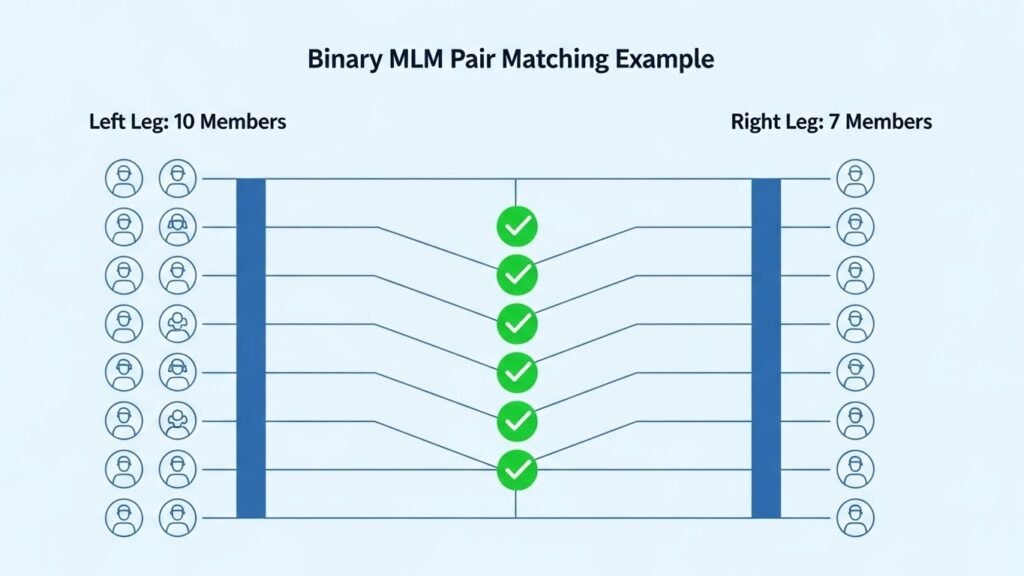 Binary MLM is a two-leg multi-level marketing structure where each member recruits only two downlines: